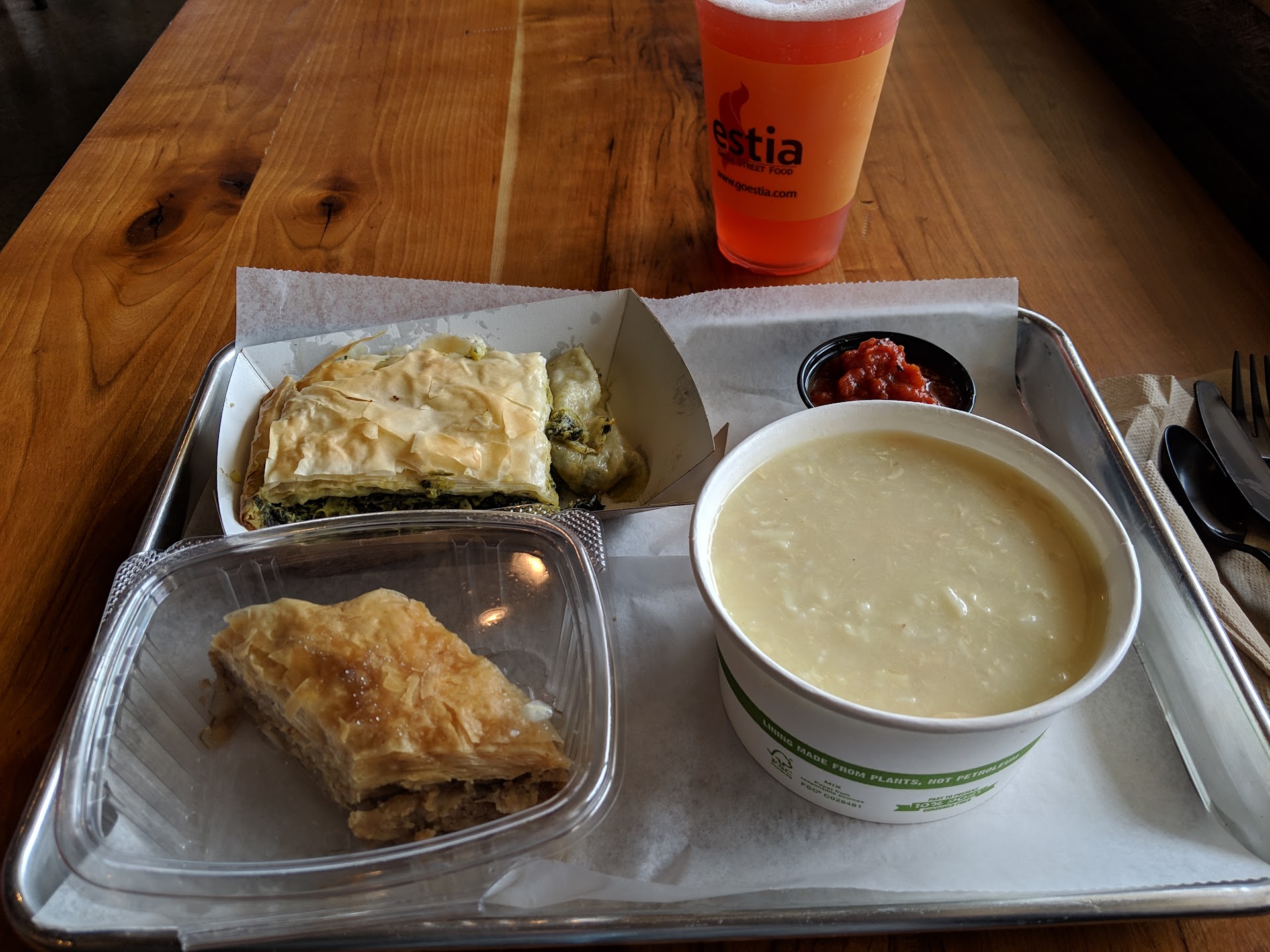 As quick overview, the main dishes here are gyros, salads, and bowls. They also offer some sides such as chicken lemon rice soup, spinach pie, and baklava.