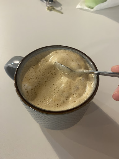 I'm so sorry 🙈 I am the definition of a coffee snob and this place tries really hard & the staff is super kind, but the coffee just isn't it for me. As with most cafés in & around Warrensburg I will order my flat white to sit & in a mug & it comes out in a take away cup. Not a huge deal, but I do ask for it to be remade. Unfortunately many places will just haphazardly dump the contents of my flat white into a mug thus ruining the foam on top of the drink. This particular flat white still has too much foam even after being dumped and is much closer to an unstable latte (see the large amount of bubbles). Flat whites should have a small amount of micro foam. The milk in du Burg's flat white tastes slightly over steamed leaving a bitter & sour taste in your mouth with a fat amount of foam on the top. I don't judge on latte art because I believe taste is more important than appearance, but I would imagine with the shape of the dine-in mugs being deep rather than round the baristas would struggle to make really beautiful latte art here. The price as well makes this the most expensive flat white I've had in Missouri and was still not done correctly unfortunately.