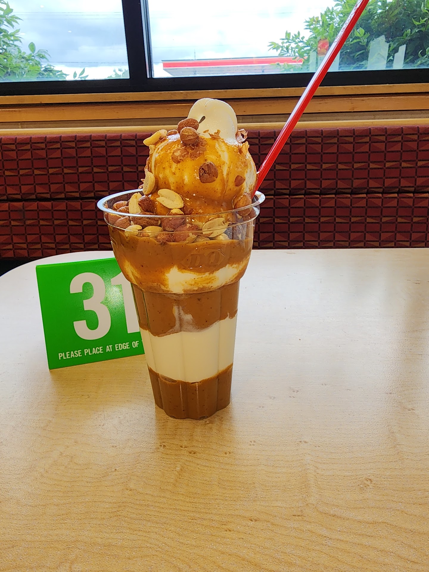 Went thru 2 people because I thought the first guy didn't get it. Second guy didn't get it either. Simply order peanut buster parfait. No chocolate add peanut butter sauce instead. I even asked second guy if he had peanut butter sauce on order cause all it said was no chocolate. Just couldn't pull it off. Got ice cream with peanuts in it. Took it back till someone could figure it out. Also don't understand why people are laughing talking behind counter and half the tables have food crumbs on them.