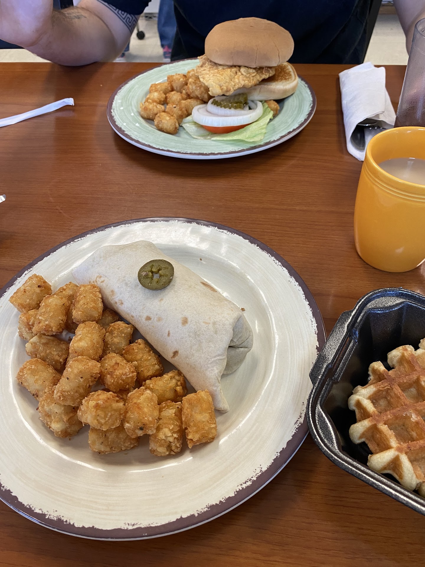 Best breakfast we’ve had in a while! My husband and I go out for breakfast a lot, and consider ourselves experts lol. The Coffee doesn’t taste like ‘diner coffee’, actually tasted really good. And the caramel iced coffee came close to the line of too sweet without tasting over-flavored, I loved it! Scrambled eggs were cooked perfectly, not rubbery or too dry like most places we’ve been. We order over medium eggs bc we like the whites to be cooked but still have a gooey yolk: a challenge for most cooks, they usually come out undercooked and more like over easy. These eggs today were perfect! Picked them up with a fork easily! I’d like to know where the bacon comes from, it was seasoned perfectly, not too salty, not to sweet, perfect Smokey flavor and not too greasy AND cooked perfectly! Pancakes were cooked well, fluffy in the middle and crisp on the edges. Biscuits and gravy, the gravy meets expectations but the biscuits tasted like fresh handmade biscuits. Fluffy texture rather than the dense biscuits that are frozen and baked to order. I never give out 5 star reviews bc I believe there is almost always room for improvement. This surely WAS a 5 star breakfast!…. Could have done without the ice in the chocolate milk, so that’s the only improvement I could ask for HAHA!