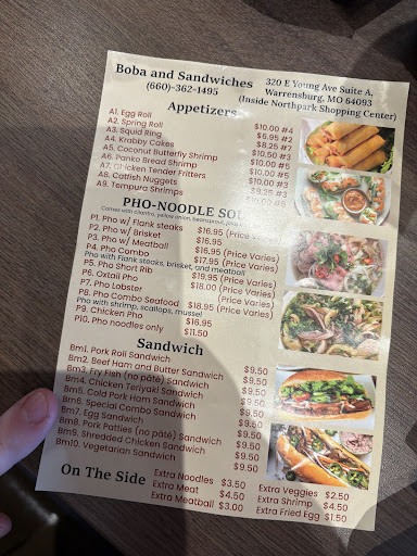 Read moreLet me preface this by saying, I absolutely love pho. Even a mediocre bowl makes me do a little happy dance while Im eating, and if I could have one meal for the rest of my life, pho would be it. However, in this case, disappointing would be an understatement. I came here after seeing the great reviews from others, and I dont know if they have a new cook or something but it was nothing like the other reviews said. Extremely salty, and had none of the flavors of a typical pho. It was almost like they just used generic chicken broth and added a couple of things to slightly alter the flavor. The combination meat was tough, and there was barely anything in the bowl. The prices are out of control. The bowl you get for 12.50 is a joke. Will not be returning and strongly advise the restaurant operators to go to literally ANY other pho place in the greater KC area and try to figure out what they are doing, because this is easily the worst. Oh, and I didnt get my happy dance for the first time...