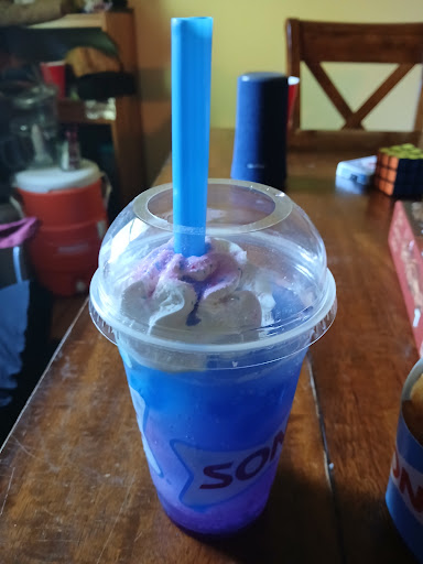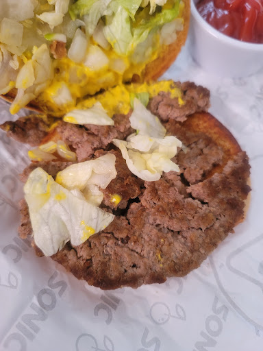 Read moreIconic Sonic. So I'll get to the food, but let me tell you about the ice! Small cylindrical cubes that add to the drink experience. Flavorful and easy to chew after the drink is gone. Of course you want that cherry limeade or ocean water or even the basic Coke to last longer, but on a hot day, relish the ice 🧊. So, back to the food. Sonic has the juiciest hamburgers with pickle onion lettuce & tomatoe. Choose the condiment of your choice (I prefer mustard) and voila, a server brings it to your car. The combos include your choice of tots or fries and back to that fantastic ice covered in the flavor drink you choose. So many flavors, you can even add fresh fruit. For the kiddies, the Wacky Pack comes with a healthy option of applesauce to add to the entre... hamburger, corn dog, grilled cheese etc. and even offer milk. The atmosphere usually includes some vintage rock era music, easy to sing along in the privacy of your own car. PS. Especially great for fall is the footlong coney covered in chili cheese, and order a side of chili cheese...