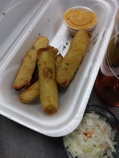 Food! The fish was cooked very well! Battered perfectly and wasn’t greasy. Wings cooked great. Not dry! Just wish I would have ordered sauce on the side because they got soft. When they say fresh cut potatoes, they mean fresh cut!! Ok.. I had a little bit of everything LOL the Rasta pasta was well seasoned and generous portion. Very tasty. Last but not least…the hush puppies! I feel like I need to mention! Very well seasoned, the outside wasn’t too hard or soft but perfect and the inside was so moist! I hate dry hush puppies. Idk. They might have been my favorite of the night. Overall I enjoyed everything! I was skeptical with it being opening day but they exceeded my expectation.