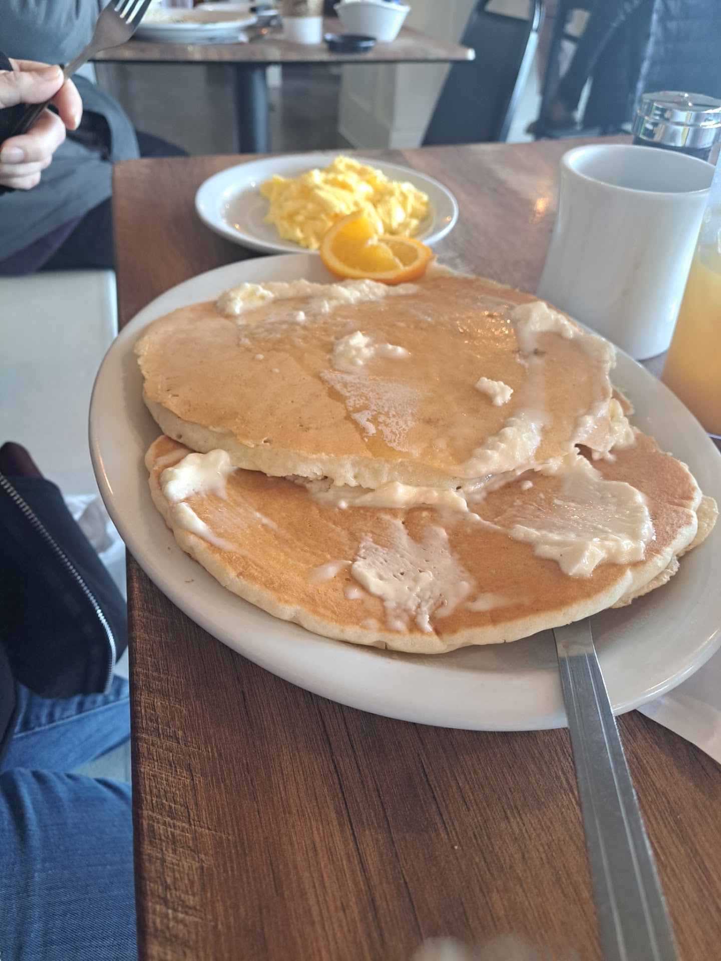 Read moreArnies's was an incredibly pleasant surprise. We live in Astoria, the neighboring town, and it is, in an area, rife with fresh seafood and fish, among so many other ingredients, the epicenter of restaurants striving toward mediocrity Arnie's is the bright light at the end of a very sad tunnel. The interior is contemporary, casual, and clean. Very clean, in fact. All the condiment containers on all the tables were visibly clean and neatly arranged. It was busy for a Wednesday afternoon at 2:30, and after dining there, I'm not surprised. The staff is friendly, courteous, and knowledgeable about their product. The place runs very smoothly, and it's clear that the staff is happy; laughing smiling cooks in the open kitchen and seemingly happy front of house staff as well. There's great energy in there! Now to THE FOOD! The plates are big and beautiful! I ordered a short stack of pancakes, thinking it would be a couple of 6 inch long pancakes and hot damn! Was I wrong. It was 2, foot long, perfectly fluffy, expertly prepared, buttermilk pancakes. It took me 3 days to finish eating them, and I made sure I did. My man had precisely, deliciously cooked over-medium eggs, a rarity at best, so kudos to the cook for that alone. He also had the Biscuits and Gravy with Arnie's signature gravy, chock full of sausage and bacon, and served over light and crunchy biscuits the size of softballs. It took me 2 days to finish eating that, too. The food was phenomenally good! I highly recommend a visit to Arnie's. I can't wait to go back for lunch. Arnie...