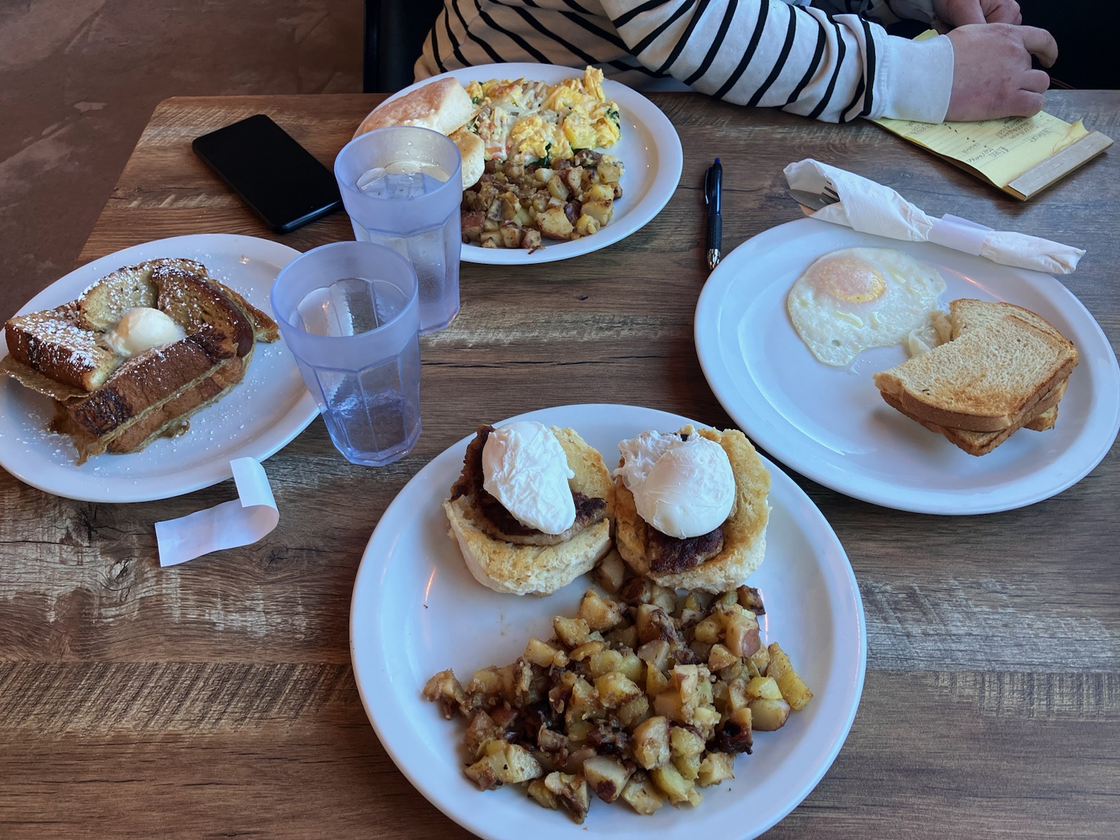 My wife and I agreed to split a cinnamon roll. It was huge, heavenly-light but the butter frosting made it delightfully sinful. Combo it for 3.50 extra and get perfect eggs, bacon, and toast.
