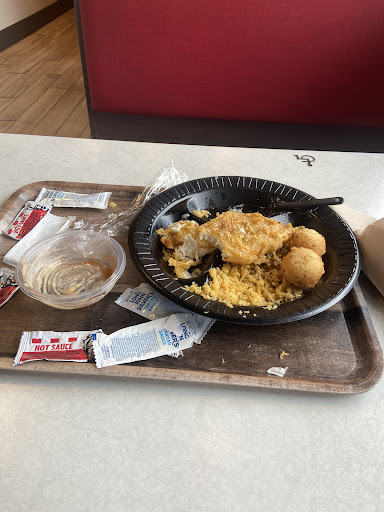 I got the fish, chicken, and shrimp combo. The batter was so dark as if the food has been sitting under a lamp for two hours. All of the meat was dry and chewy. The hush puppies were ok. Definitely did not meet my memories of how good they were. The rest of my family had the same experience with their food as well. My son's friend got chicken tenders from KFC and they were dried out also.