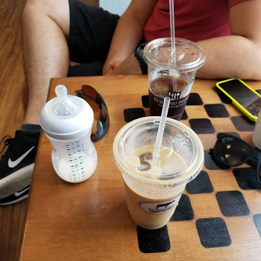 Four of us were in there for breakfast at Turning Point. We had a 30 minute wait so I decided to get one of the 5 things on the chill menu. I ordered a Mocha Espresso Shake-a-chino. Which had Espresso, frozen hot chocolate, chocolate chips and ice chips. Simple. I saw her making one with ice cream, so I assumed that wasn't mine. Two gentlemen asked about what she was making and she told them the ingredients, which included ice cream. So again, I assumed it wasn't mine. Then, when they called the order out, she handed me the one she had just made with ice cream. So....I asked, if this had ice cream. The young lady replied yes, that's what you ordered. I politely said, "well on the board, it says that it has frozen hot chocolate, not ice cream." She said, oh, ok. Well, do you want me to remake it, or do you just want this? I said, yes, please, remake it. Then her and the other young lady were talking back and forth, almost whispering about me asking for the drink I ordered. So, the second young lady made the drink now. And calls out..."frozen hot chocolate." So I ask....is this mine? She said yes. Frozen hot chocolate. And I politely said, well, this isn't what I ordered. I ordered the mocha espresso shake a chino. Which then I was told was the first one with ice cream. I pointed to the board and said....well...that's not what it says up there. They both stared at the board and had no idea what I was asking for. And then, again, said...well we can make it with the chocolate chips, if you want. I felt like I was going crazy or something. Yes...I would like my $5.25 coffee drink (plus the $1 tip I gave beforehand), the way I ordered...which is exactly how it is written on the board. I changed nothing and asked for no special ingredients. At the very least, an apology would have been nice. Instead I was made to feel like I was wrong and talked about under their breath. I will note two things now. 1. I would have said something to the manager at the time...but that manager passed by me 3 or 4 times while I was waiting at the register to order and didn't even acknowledge me, not a "someone will be right with you," are you being helped", nothing. So I thought...what's the point? 2. While eating at the turning point, I noticed that the drink I had ordered that was on the board at cowabunga, wasn't on the menu of the turning point. So maybe both sides, the restaurant and the coffee shop need to get on the same page. But still, what I ordered was a drink on the board where they worked. It should have been right.