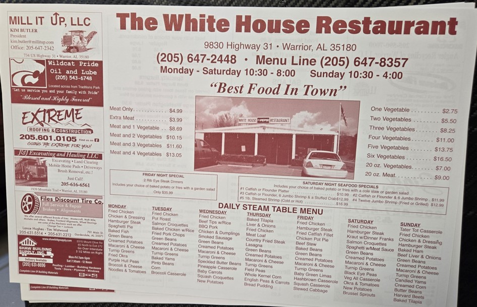 I’ve eaten a lot of country cooking in my day—been baptized in gravy, raised on cornbread, and emotionally restructured by a good biscuit. But White House Restaurant in Alabama? That’s not just food. That’s a war for your soul, and I went in unarmed.