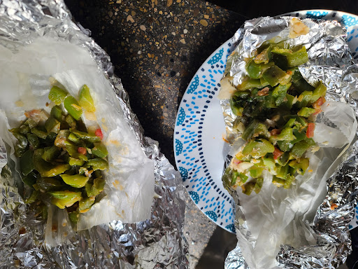 Read moreWe ordered take out and waited about 10 mins on top of the 10 mins that they quoted. First time here; had a vegetarian burrito without the lettuce. They put way too many green bell peppers in as a filler. Was not told that green bell peppers would be in the burrito; was told it was guacamole, vegetarian beans and rice, cheese, lettuce and sour cream. See the picture of all the bell peppers that were picked out of the burrito. Too many! Very few beans were on the burrito. Ordered a side of guacamole, which was tasty and fresh, but VERY salty. We are willing to try this place one more time, but will be more specific...