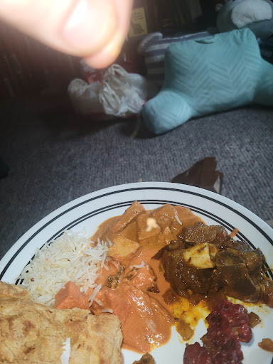 I decided to try this restaurant since I saw it had Indian groceries and I needed to pick up a few items. We arrived and it was empty. Definitely wasnât a good sign. We went in to check it out anyways. After shopping for our items, we ordered mango lassi, butter chicken, garlic naan, paneer pokarora , and veggie samosa. Mango lassi was already made and sitting inside the cooler with other beverages. After a sip we noticed some chunky stuff coming through the straw. We thought it was mango chunks but it doesnât have any taste. It almost looks like curdled yogurt pieces or some type of butter ?? I couldnât finish it because of the chunks. they grossed me out. And then the butter chicken didnât come with a side of rice, you have to individually order the rice. The sauce has a little good flavor but itâs hard to find under all the blandness. The rice tasted like it was either over cooked or was made a day or 2 ago. The garlic naan was thick and soggy. It was also disappointing i only got 1 piece considering all other Indian restaurants give 3-4 pieces for 1 order. I also didnât taste hardly any garlic what so ever. It tasted like wet plain bread. The samosa did have a spice kick that came out of nowhere⌠but again.. no flavor. The only thing I did like was my paneer pakora. As it wasnât a menu item and I had it specialty ordered. It was still strange though. But it was edible. As an Indian food lover ⌠I would not recommend ordering any food here. Itâs a waste of money and your stomach will not be happy. But the little grocery store part was cool. Make sure to check expiration though, I did buy my son a pack of chocolate cookies that expired in January. This place is not for me and will not be a place...