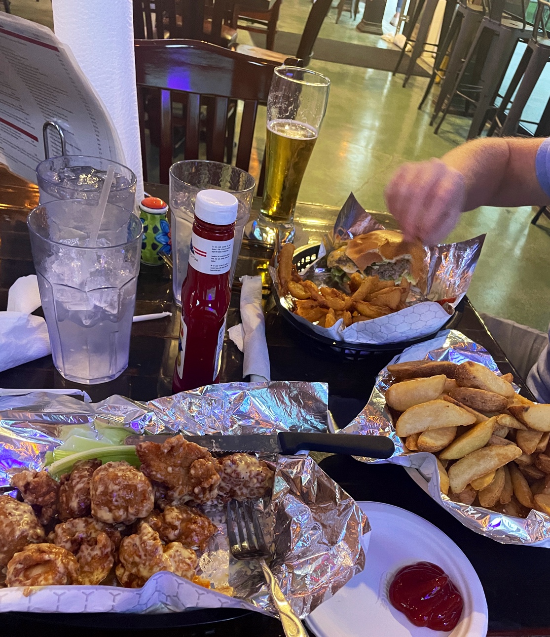 Read moreItâs extremely dark, the TVs and music were far too loud. There were not enough menus for our entire table of 4. After seating ourselves, the only waitress in the place came over to take out drink order. She was fabulous. Ordered food and regretted it the minute it came out. I had a burger, it was so bad everyone at my table made jokes about the way it looked. My husbandâs wings were soaked in a very gross sauce that was just hot, no flavor. My friends got a pizza with light sauce and it was also very runny from too much sauce. The onion petals were delicious but the ranch was like water. I would suggest the Yum Yum restaurant just down the way, far better experience than the hey Turtle IMO, and...