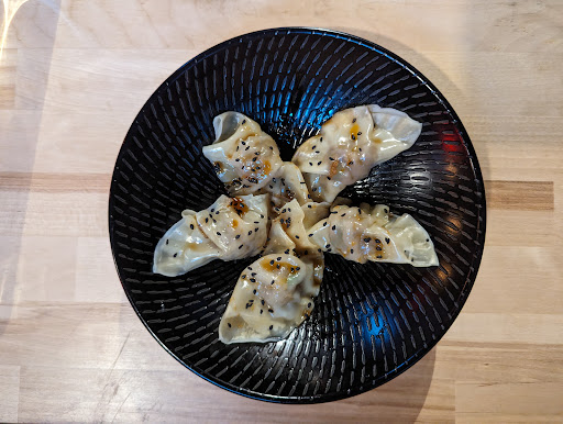GYOZA pork dumplings, lemongrass, leek, scallion, ginger, chili oil, sesame