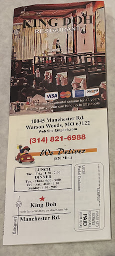 Read moreThe staff was very sweet and pleasant. I was immediately greeted with a friendly smile and directed to my table. The restaurant dining area is intimately dark and romantic while the decor is antiquated and warn. I ordered the Hunan Chicken and Fried Wong Tong. The Wong Tong was of good quality with a delectable crispness filled with an adequate amount of filling. They served it with two different dipping sauces a sweet sweet and sour, and a mustard in an elegant divided sauce tray. The Hunan Chicken had a repellent presentation served with steamed rice and regrettably unappetizing. The main course was disappointing and of poor quality. The price for my meal was just over $17. The cost is incompatible with the experience. King Doh Restaurant has very sweet people but a most unpleasant...