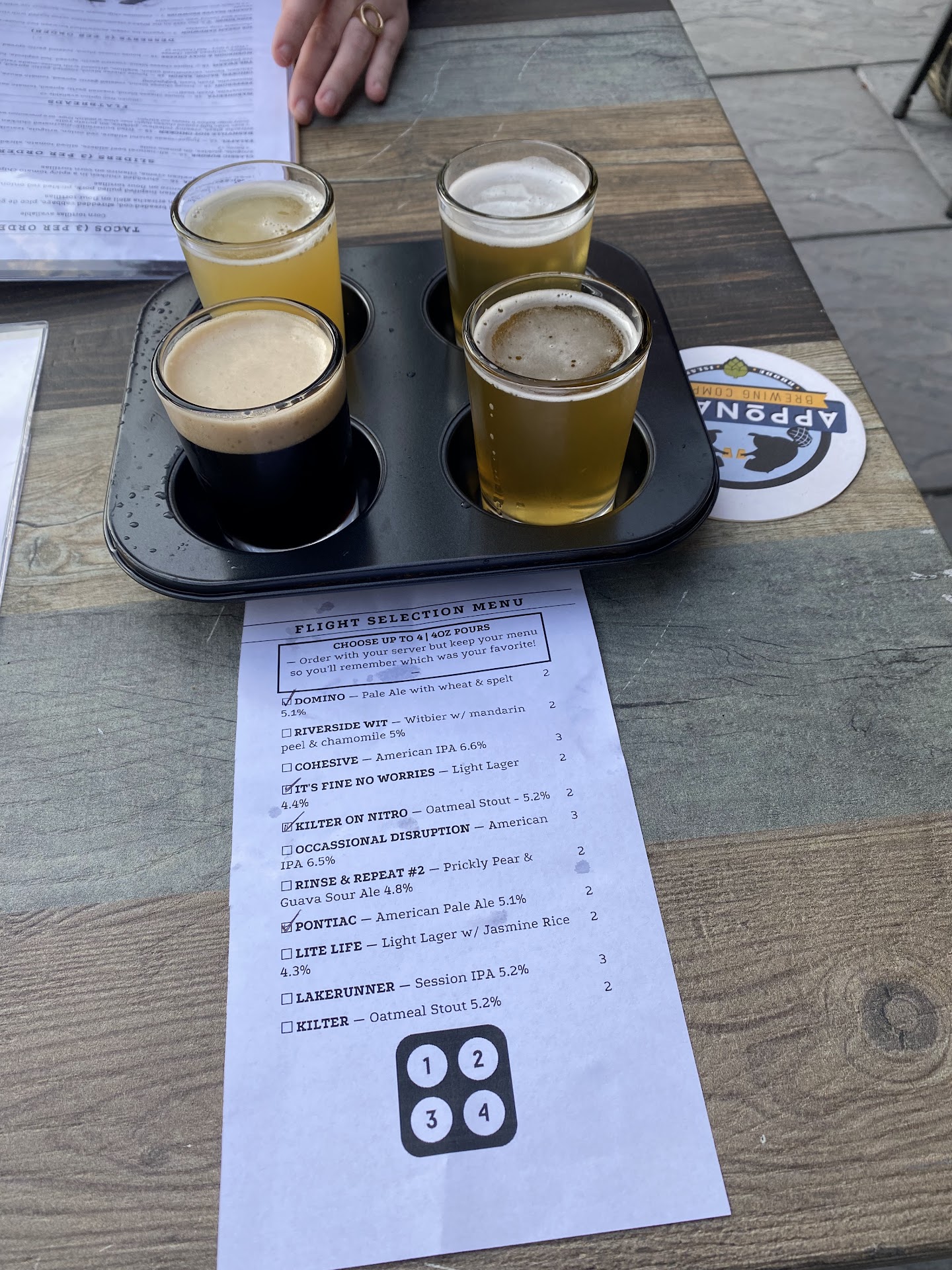 Portion sizes were good and the server was very nice. I can't speak much on the beer. I tried their lite beer and another one. And it was just OK. But I did like the 4oz pours for $2/3. It was like a "create my own flight". I only got 2 of them and I just thought that was cool.