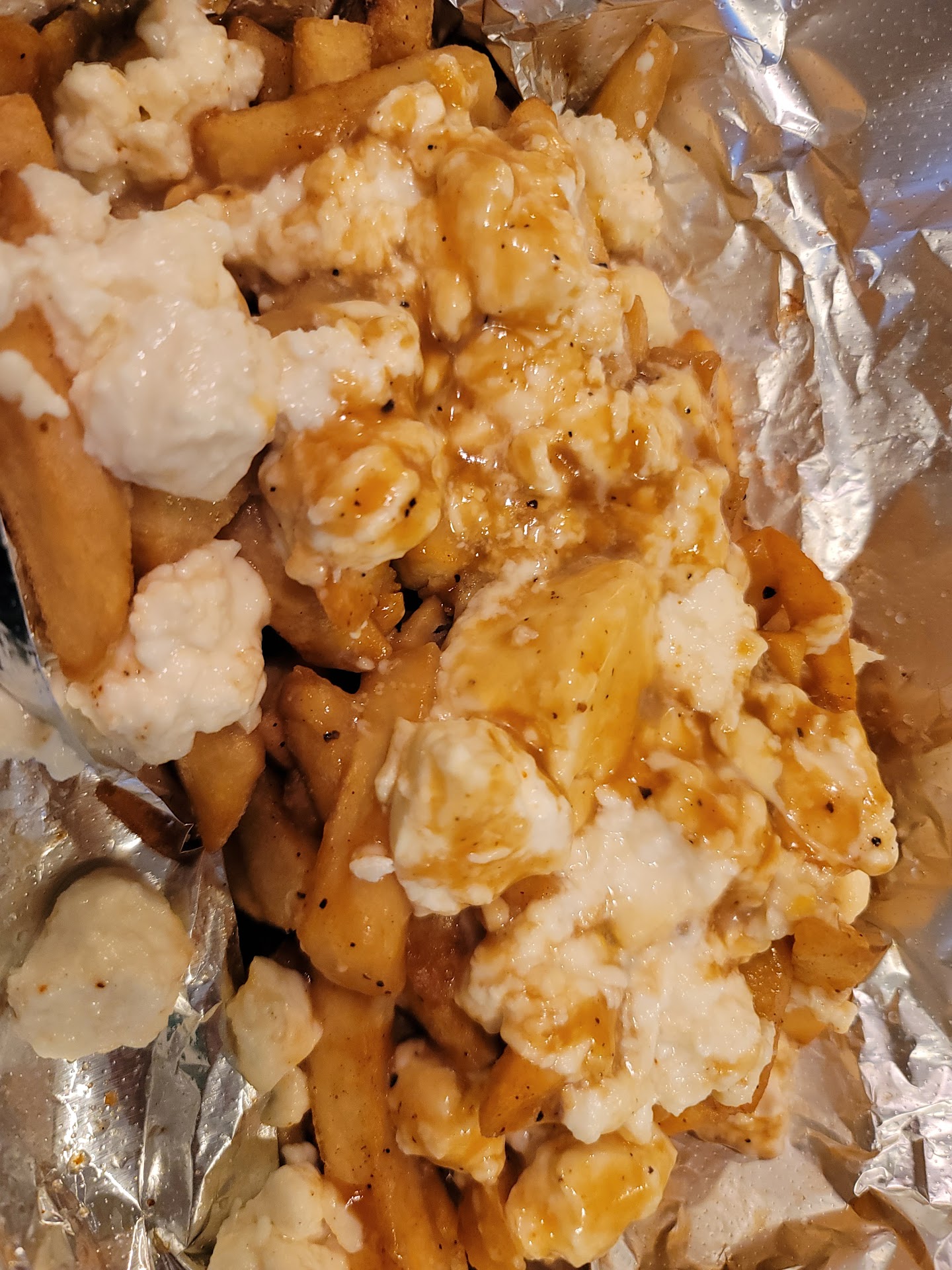 The fries were HUGE! The box felt like 5lbs of food & we could not finish them. There were a lot of toppings on the fries and they were wicked hot. I would come back for those :)