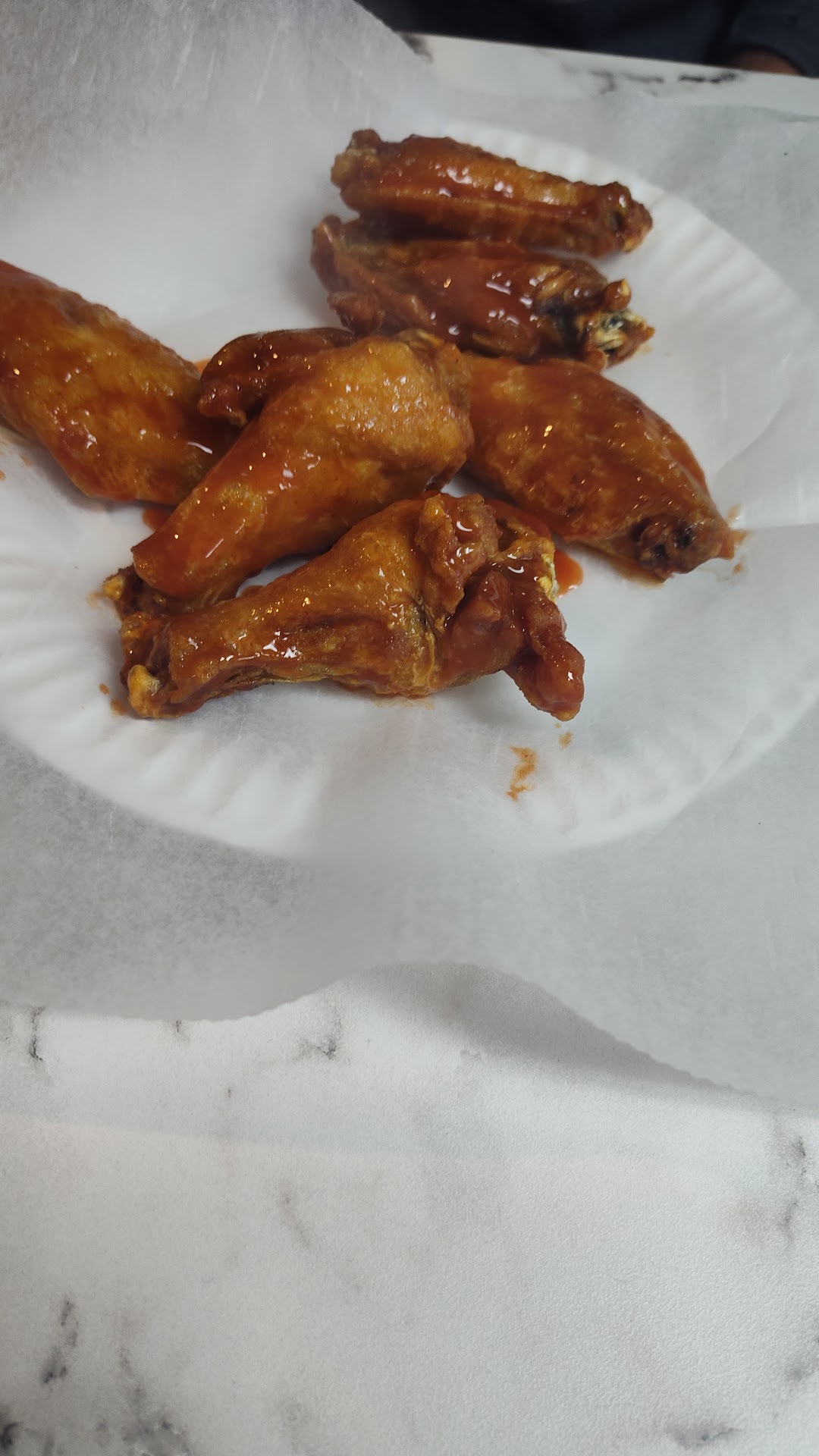 The Hot Buffalo and Honey BBQ wings were crispy, flavorful, moist, and exactly what you want when ordering wings from a neighborhood pizza spot.