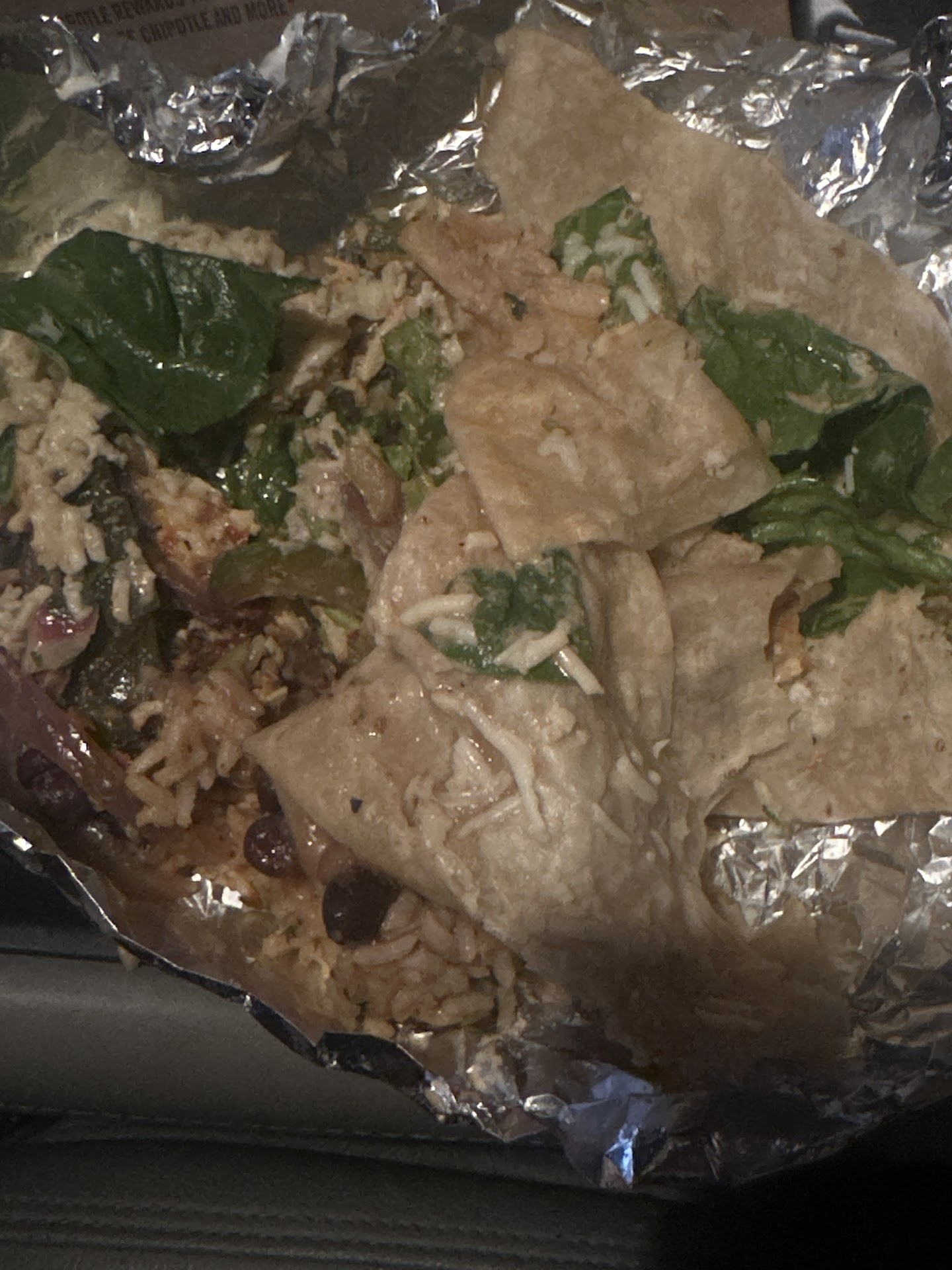 This is when I look over at the line and see they have a full thing of sour cream just waiting to be used. Embarrassingly poor communication but this is understandable even though they were out of items they offered on the app, and refused to give me sour cream for whatever reason. Then I get home and my carnitas quesadilla was actually 3 chicken tacos that were filled to the brim with white rice (which I didn't order) and only one of the tacos actually had any actual amount of chicken, the others had 1 or 2 pieces than cheese and rice, the burrito was fine but no sour...