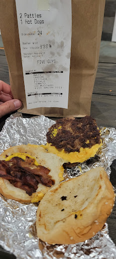 Read moreUpdate again: this place makes the best fast food burger NOW. The three new workers today were phenomenal and I hope they get the credit their due. The manager was amazing ! You have to give credit where credit is due and this place has turned it around! Great job management. Love this Five Guys now. Keep up the great work. New team in picture. This one is struggling and not the best one around. Workers play around in the back, and I'm ok with it if you can STILL get the order right too!! But 2 times in a row, they can't. Should be easy. This is a burger place, right ? BUT it's difficult here. They also don't pour the extra amount of fries over into the bag that you are used to at other ones. Actually Five Guys tell you to do this since they are priced accordingly to do so. The manager is super nice, but you can tell that she is overwhelmed by the staff she has. It looks like they run the place. Would love, for 30 bucks, for 2 burgers and 1 fry, that you get it that mustard and tomatoes are NOT wanted on the burger when it is not ordered. Simple. I hope they get it together there. The manager is trying. Good...