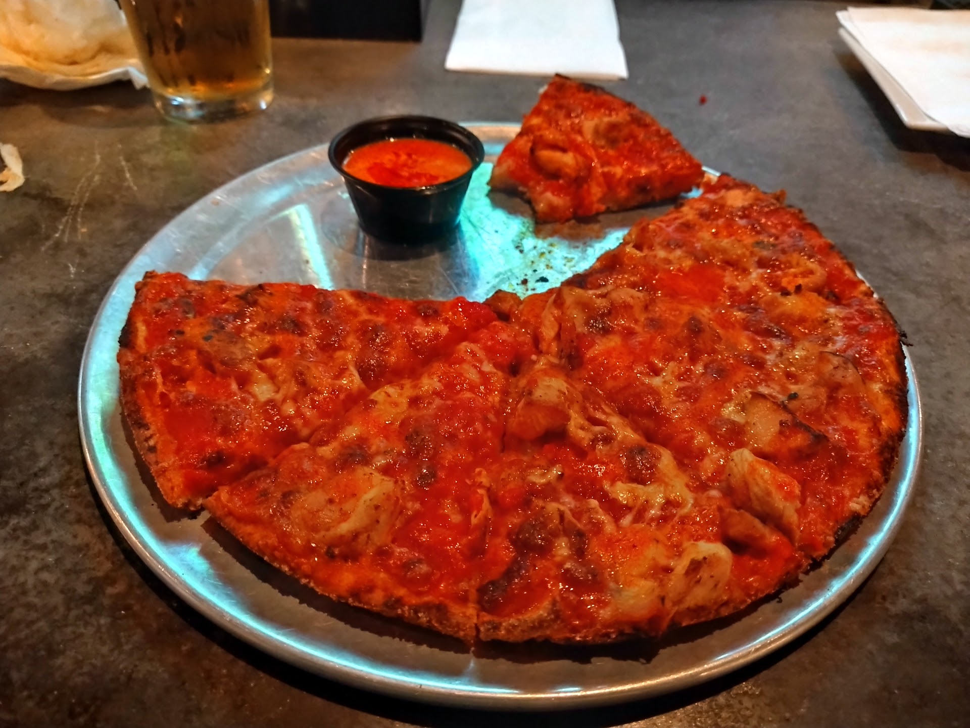Meaty, well seasoned, saucy, and a little crispy, we were more than happy with them. Unfortunately, we didn't see a server again until they were fine. We weren't next for anything, but by then our hunger for a pIzza was gone and if it weren't we wouldn't have wanted to wait however long for it to cook.