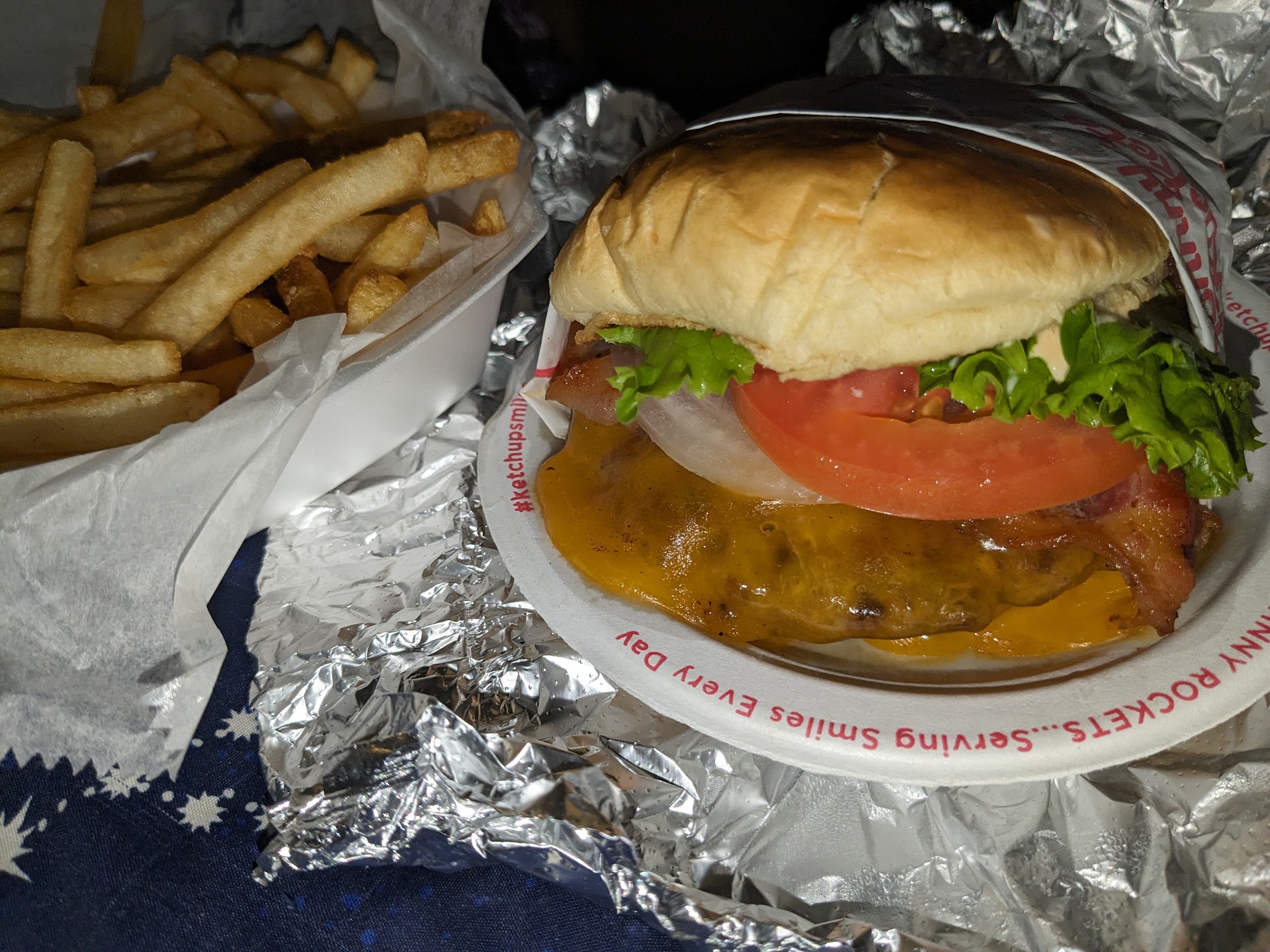 We thought the tots and onion rings were good. My daughter also liked the shake she ordered. And then I saw my burger. I was pretty surprised with the wheat toast, playdough textured burger, and no spread or dressing. I was SO disappointed in this $8 "burger." I wanted to give a higher rating with the other food, but I just can't bring...