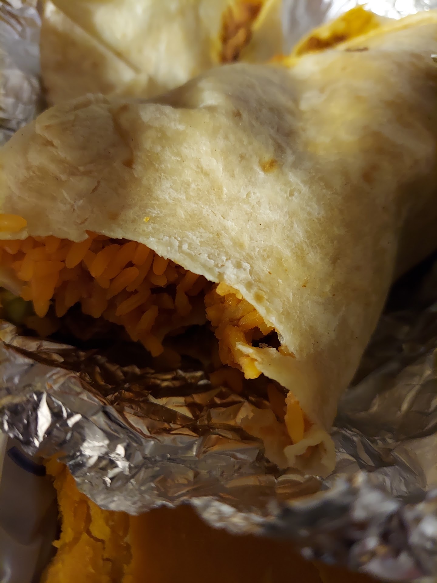 My favorite is the shrimp fajita burrito that comes really loaded and with large shrimps. On other days, not very often, I like that I can opt for a combination filling of carne asada, pulled pork, chicken or just double up the shrimp serving on the Burrito Gigante. I've also ordered the Fajita plate and the Jamaican Pie.