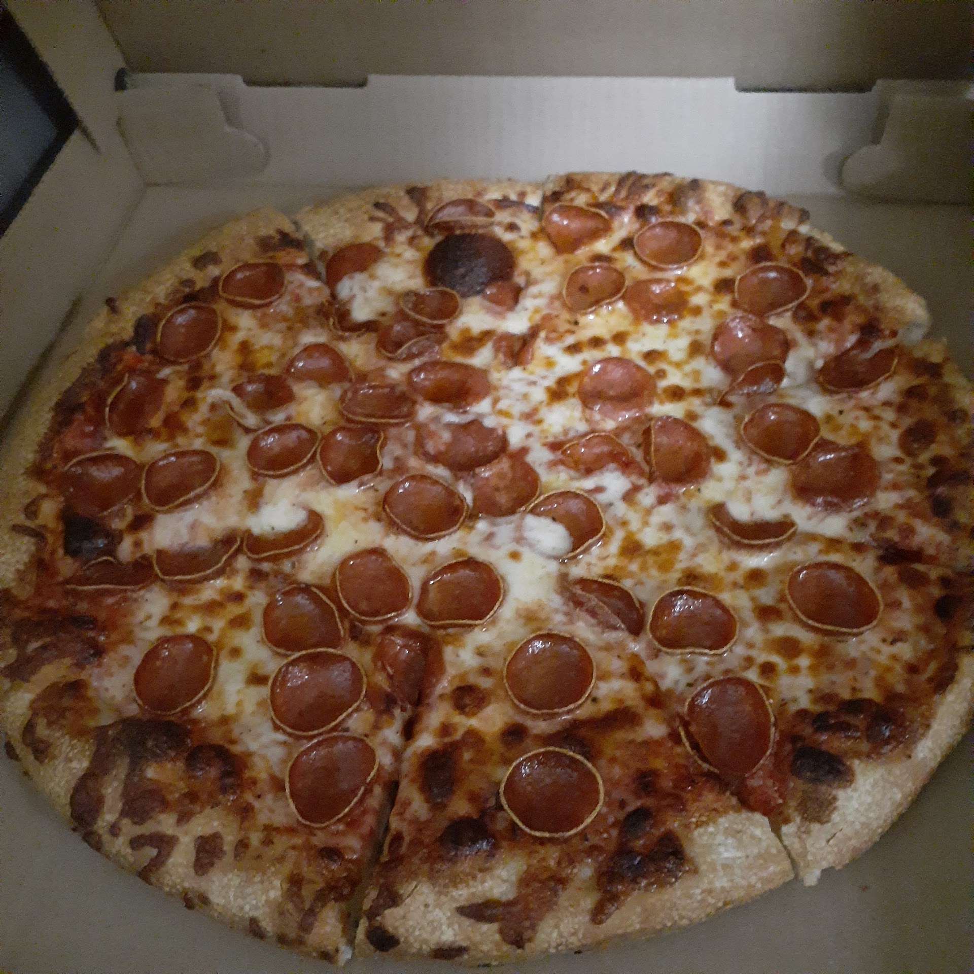 Read moreMy family says pizza is amazing, but I think its because the sauce has a lot of sugar, so severe diabetics be warned. But to me, the pizza is cooked very well and is very tasty. The grinders are also really good. I've had a meatball and chicken finger so far, no complaints. The salad, however needs a rework. I got an antipasto. It was OVERLOADED with iceberg lettuce. It had olives, tomatoes and a few green peppers. The onions were sliced way to thin, hardly there. It had barely 2 slices of salami and provolone and I'm honestly not sure what the other meat was trying to be, some sort of sliced canned ham. The blue cheese dressing was good, but I needed to throw 3/4 of the lettuce away cause there wasn't enough dressing to cover it all. The dinner roll was good, nice and soft. Overall the rest of the menu is really good, but the salad was a disappointment. I'd pay a buck or two more if there was some gumption to it. For now, I'll still buy the great pizza for the family, but I'll get my salad...