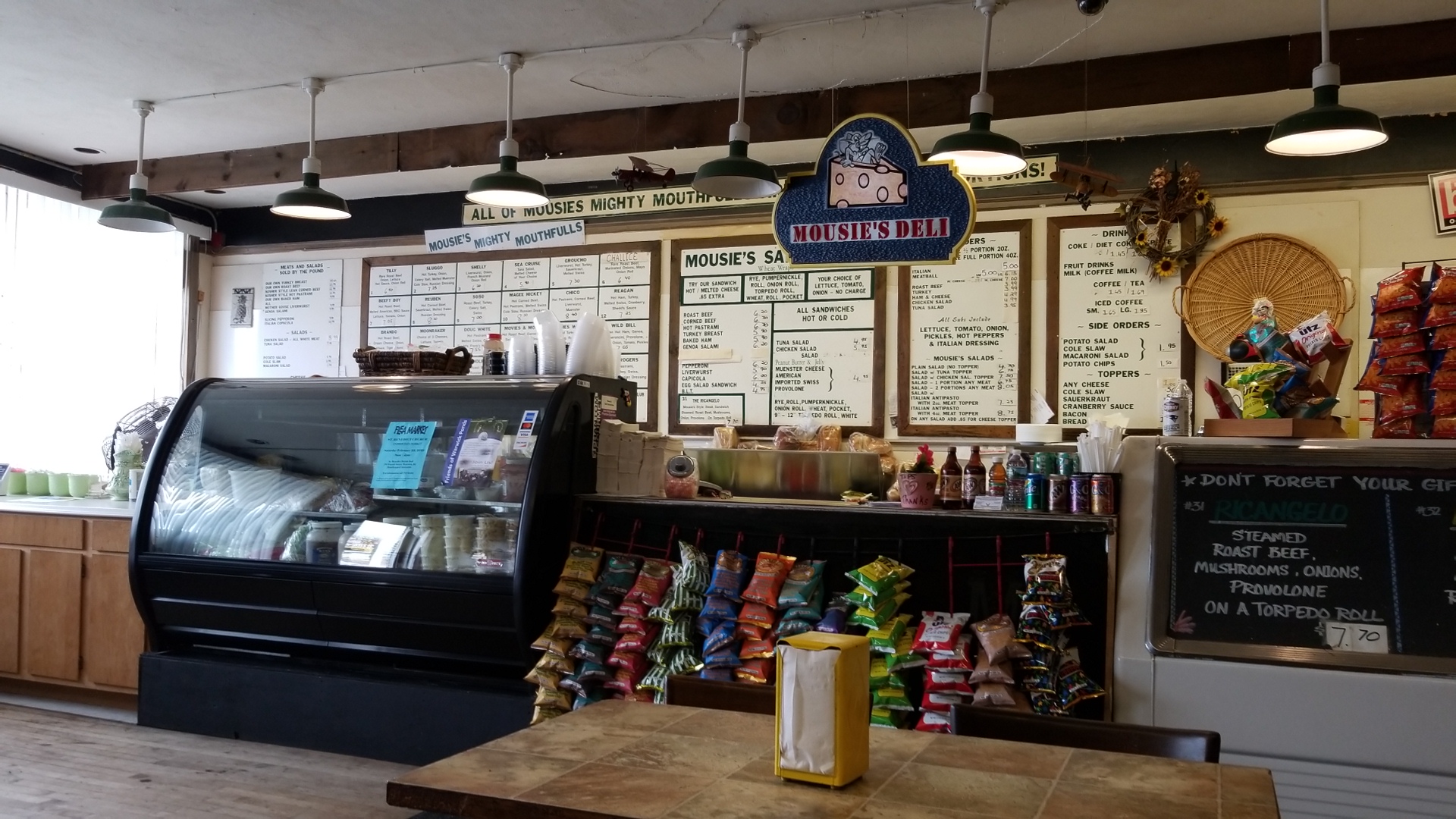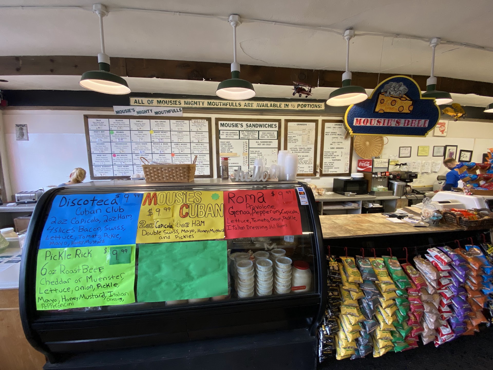 Read moreI stopped in recently for a quick bite, having never been to Mousies Deli before. I was surprised at the large variety of offerings. I always try to select healthier choices and found quite a few. here. The counter people were so friendly and helpful. After I expressed my wish to go with a healthier selection, they started offering me all kinds of ideas and custom choices. What a pleasant surprise. I ended up with a delicious LARGE custom sandwich at a very reasonable price. I wanted to stay and have my lunch there, but I found the atmosphere to be a little dark, which was the only drawback I could find. If you are looking for something yummy and not sure what you want... this is the place to come. You'll find pleasant conversation and delicious food....