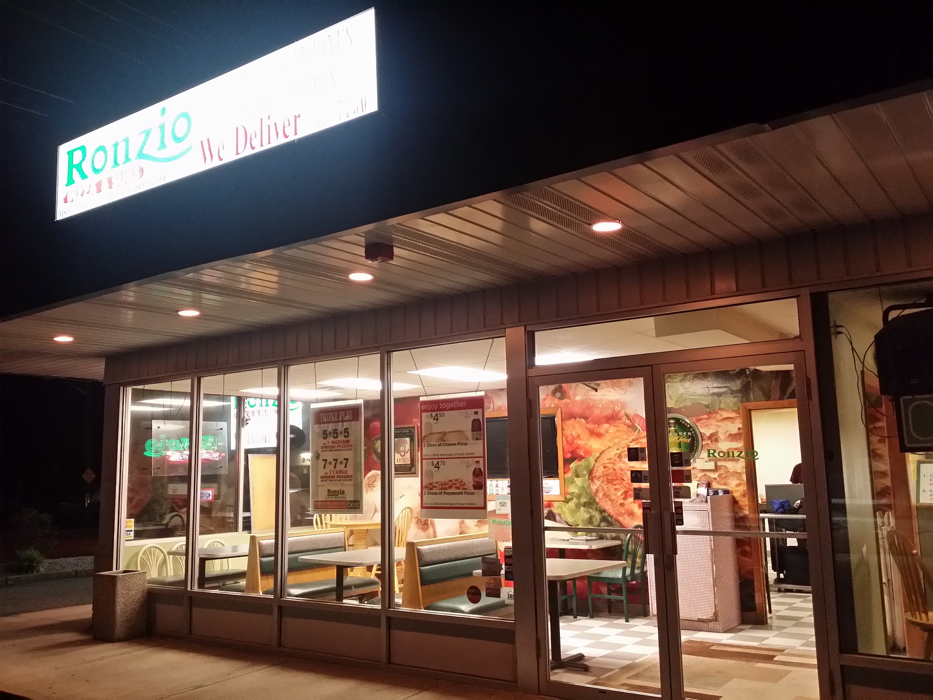 Read moreYa know? Sometimes it's easy to overlook those places that you drive by all of the time and say to yourself, "...Oh yeah. I've got to go there again sometime". Today was the day. I ordered a pizza for my crew at work. Nothing earth shattering, but the pizza was tasty, cooked well the way I like it and delivered so hot as if the oven were next door! Ronzio's may not be "coal fired", "oven from Italy", offer every type of pizza known to man or be a fortune but it's good. It's satisfying, It's hot and they have a good selection. Make today your day to stop and give 'em a try or re-try. Maybe today will be your day too when you say, "Hmmm, I've gotta go more often.". Best of all, the prices...