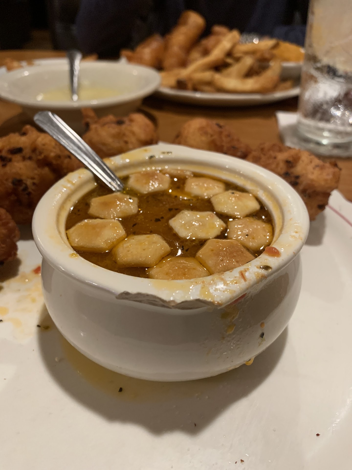 Read moreWe go to many restaurants on a regular basis. We came here only because we had a gift certificate to use. I wish I could include photos, as it was really funny and hard to believe. We ordered ‘drinks’ which is basically Sutter Home or beer. A pumpkin martini was offered but it is still summer. We started with the side salad which was fresh and cold. The waitress was pleasant. We ordered apps and chose calamari supreme- which was good, and also mozzarella sticks which were gooey liquidy made Sonic look like 5 star. Couldn’t eat more than that bite. Spouse ordered prime rib 80% fat, and I dined on eggplant parm which tasted pretty good, but enough grease for a day at a car lot of oil changes. You are wondering why the 2 star??.. well the corn on the cob that came with hubby’s 26.99 entree’ looked half eaten. It was all in the middle& looked like the misfit toy. In really bad shape.. must’ve been on a final sale clearance. We ordered desert to- go to attempt to use up the gift card. We could see the waitress from our table bagging up our desert. She dropped it on the floor, looked around quick, and put it in the bag and delivered it to our table. We still left a good tip. We still had $9 left on the card, so we paid it forward and gave it to a table near ours. Don’t sit near the window because if a child puts their hand down on the side of the bench, there is a thick electric cord and junction box within tiny hands with a whole lotta amps. If you enjoy a 70’s style paneled restaurant, then this...