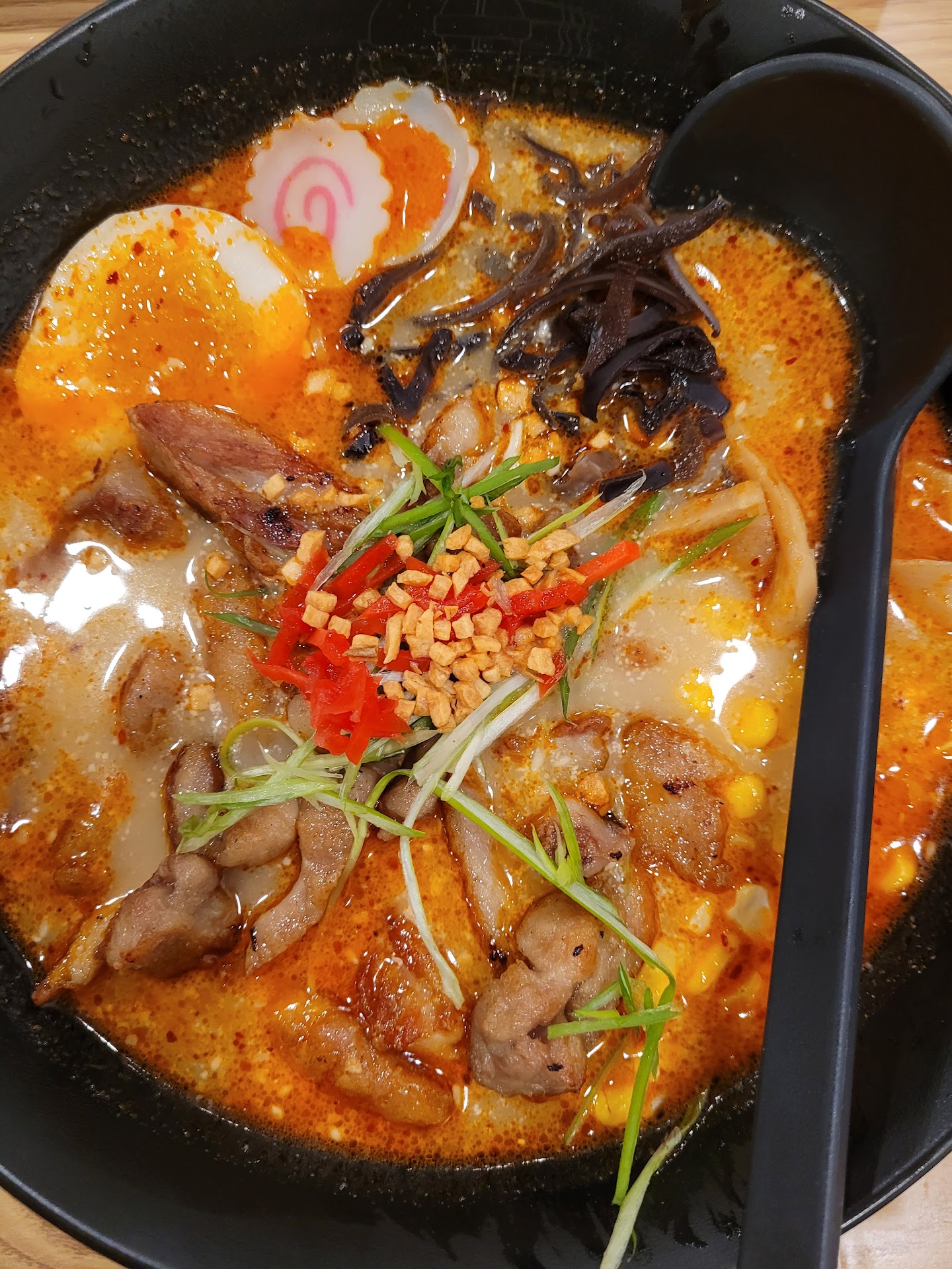 As a preamble to ramen, we ordered the fried calamari. It was so-so. Let's talk ramen--went for the beef ramen while my husband opted for his favorite miso ramen. Plus: presentation of the dish. The beef broth was disappointingly bland.
