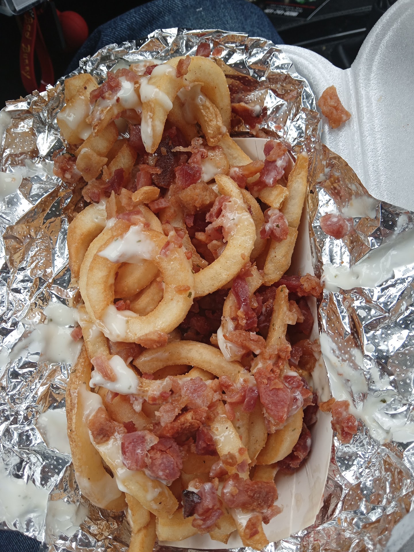 The bacon ranch fries (curley fries mind you, curley damn it!) were delicious. My wife enjoyed her BBQ bacon cheeseburger and mozzarella sticks.