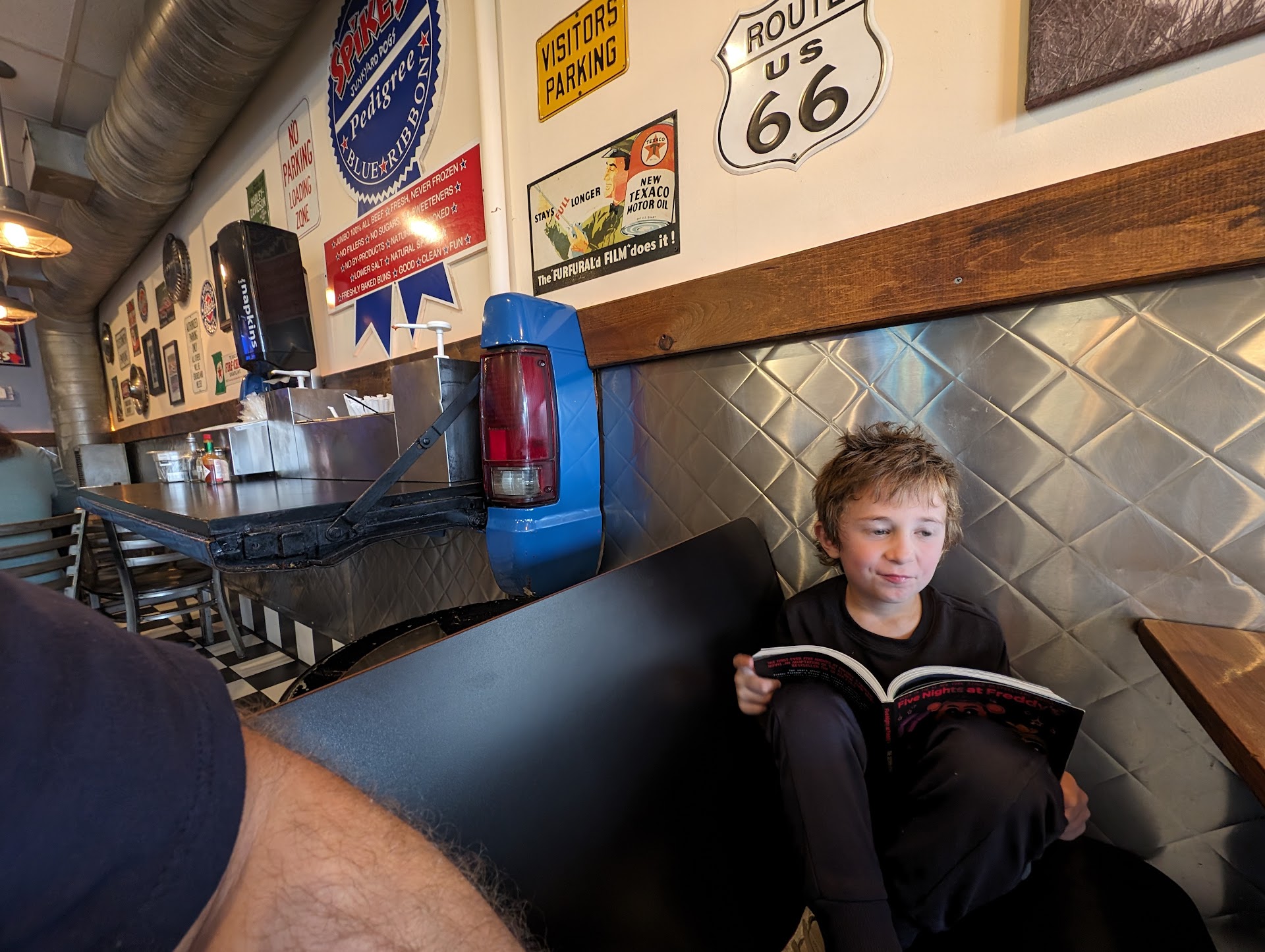 I liked this location with all the stuff on the walls, fitting with the junkyard theme. The crew were nice and pleasant, and food was fast. You guys just need to put a little effort in cleaning up. I don't care about dirty places (to a degree) because I am giving the benefit of the doubt, that's why I'm giving my rating. Oh and the toilet was broken, so that was a whole thing in itself. I didn't report it because I didn't think the workers...