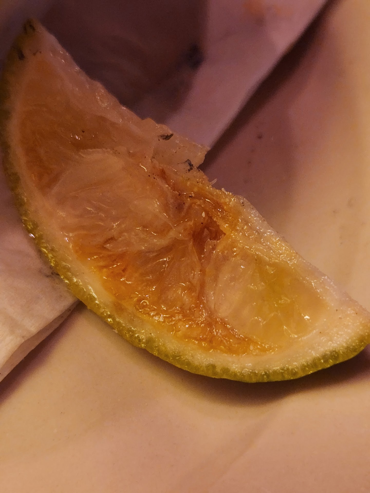 The drinks finally arrived so I took a couple of sips to be able to dump the patron shot in and then squeeze the lime in.When I grabbed the lime it was so slimy and brown I almost puked thinking I just drank that.I called over the waitress and said I will not drink this, do you see this lime, she responded that I must have had a bad lime. I told her I wouldn't drink it so she took it away and came back with the receipt. It had a $5 credit on it.The drink itself is 16 dollars and the shot is 3 dollars extra. I asked to speak with the manager.
