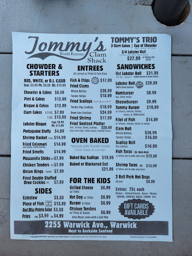 These small family-run âclam shacksâ are found all over New England. Occasionally youâll stumble upon one serving transcendent fried seafood, and sometimes youâll find one thatâs horrible. Tommyâs is âmiddle-of-the-road.â I like that you can get some of the cheapest prepared seafood in town here on Tommyâs value-oriented menu, as it should be for the no-frills experience youâll find here.