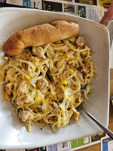 I ordered the boathouse pasta. I'll have to say the main course was delicious at least for me. The only complaint I had with the main dish was the small bread stick it came with. The flavor was great and angel hair pasta was perfect. I also had gotten an appetizer. I tried the spinach artichoke dip with tortilla chips. I was not impressed. I couldn't tell if it was home made or just purchased from the freezer section of the local Walmart I had no artichoke hearts in any of it at all so it was flavored slightly like artichoke and had some spinach. My Boyfriend ordered the prime rib steak. With onions and mushrooms and mashed potatoes for the side veggie and the ruben soup which happened to be the best part of his meal. The prime rib was mostly fat and the sauteed onions and mushrooms were not the tastiest. The onions were sliced as of they were going into an Asian dish so super stringy and undercooked the mushrooms were small and looked as if they came from a can. 2 thumbs down on the flavor of the main dish and 2 thumbs down on the extra onion and mushroom toppings. They had said that the potatoes were made with butter but when butter is melted it does not look like oil especially atop mashed potatoes. I am taking a guess but with the flavor of the" butter" I would guess it was either margarine or something similar. Disappointed in the experience and for our first time there and paying nearly 100$ on a meal that was so so. Was a bit disappointing. The waitress we had was very attentive almost to the point of being a little much. But very kind and had great things to say about the cook. Which is probably why I was kind of disappointed in the build up of the food we were served. I was never asked if I needed a refill just asked how it tasted. And for a server to be at the table as long as she was I felt like she was part of our date by the end. It happened to be the place I chose to go to for my birthday. But kinda wish I would have gone someplace else. Or at least not have had to pay as much for a meal that...