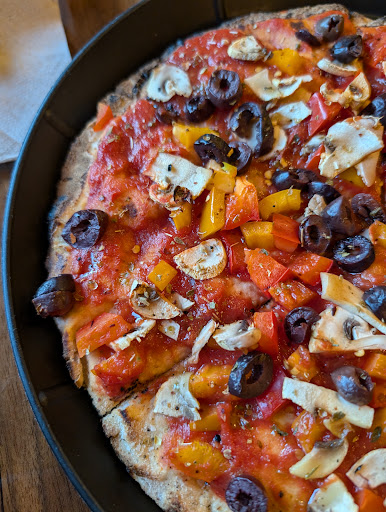 Read moreThis place rules!! My wife and I are vegan and she is also gluten free, so our pizzas around town tend to be a little sad. GF crust usually makes hard, overly crispy, skinny, and small pizzas. The crust here is the BEST GF crust we've ever tasted. It's big, it's fluffy and perfectly crispy, it's delicious, AND it is vegan!! That can be another issue we face. We've gotten their pizza with out cheese and it is still SO good. We are hoping for some sort of vegan cheese one day, but the cheese-less is treating us well. Their specials are fun, their drink selections are perfect, and their salads are delicious!! It is so great to order a salad that is actually worthwhile. They're huge, they come with great and fresh toppings, and are perfectly dressed. This place clearly takes pride in using the best ingredients they can, coming up with fun and unique pizzas, offering a cozy and cool place (check out their walls!), and making their food GREAT. I could go on, but I couldn't recommend this place more and I can't even try half of...
