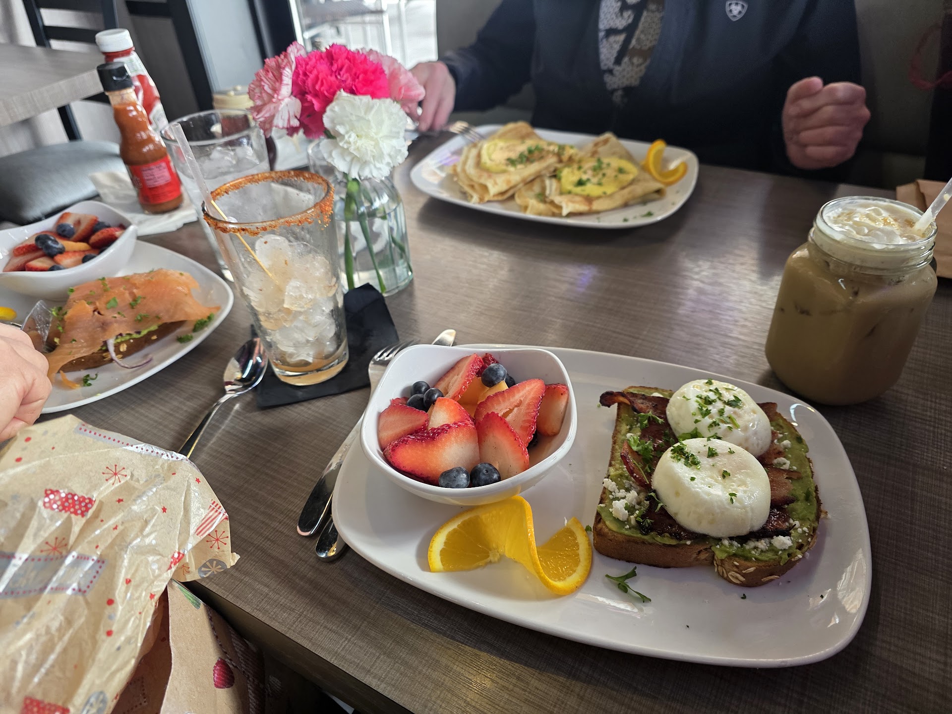 Β Β Β Read moreI came here today for brunch the restaurant was beautifully decorated and inviting. The menu wasnβt overwhelming and everything sounded wonderful. I ended up with the chunky monkey pancakes with maple syrup(!!!) over medium eggs and a cucumber ginger mule (nonalcoholic). The food was outstanding! I died and went to heaven from the first bite. The pancakes are so filling, golden fluffy and are the best things I have eaten in a long time. The eggs perfection you would be surprised how many breakfast places canβt cook over easy/medium eggs. The mule so good (I was told by the owner that he will be getting his liquor license soon.) Hats off to the chef because everything was perfection!