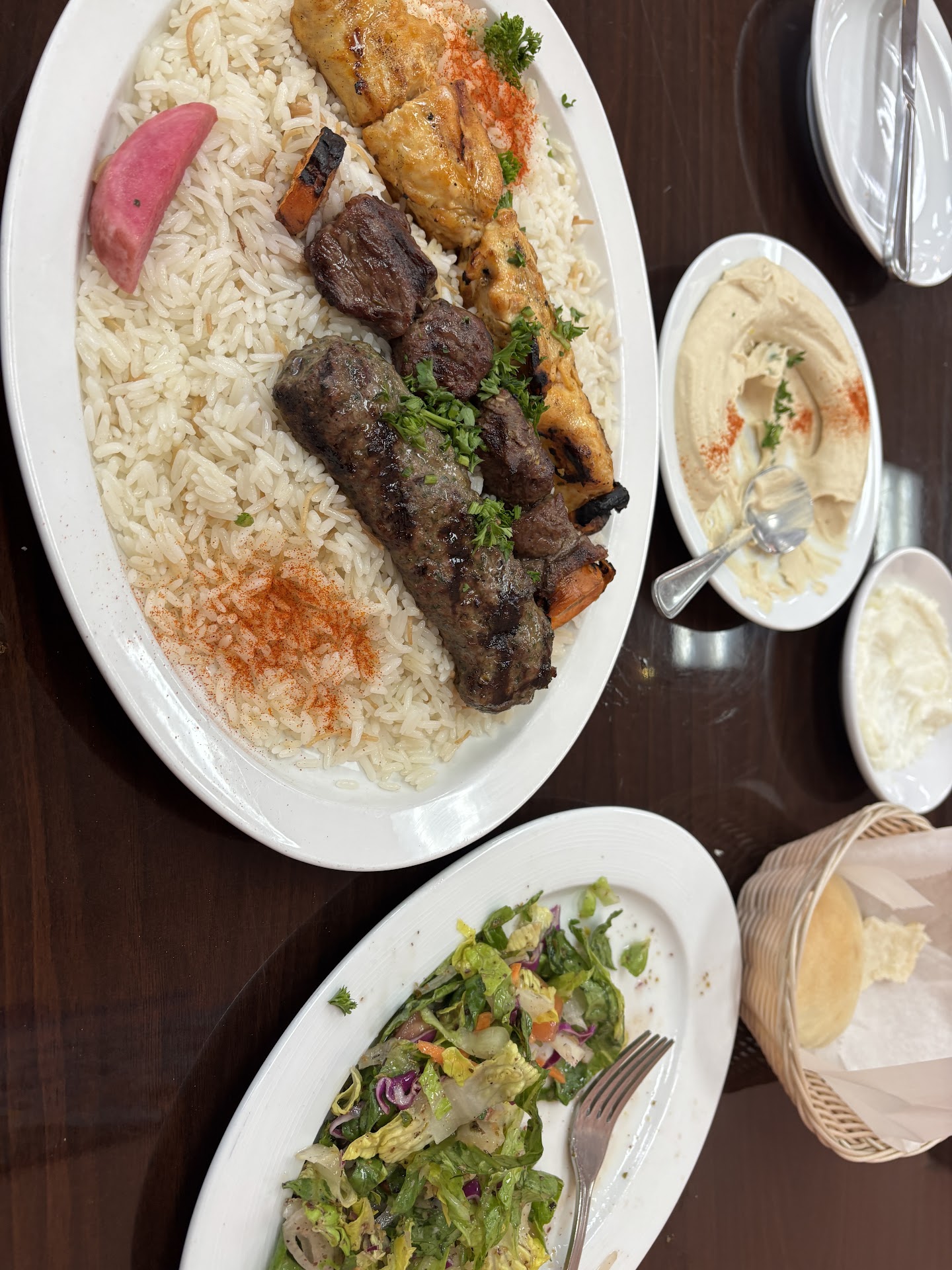 1- Restroom cleanliness ( I know it sounds out of the ordinary. It is the most important . The threshold . Decide to go or stay. This place has a very very clean restroom) . They have passed test #1 2- Wait Staff: the young and a gentle guy was very welcoming and very cheerful. We have conversed about the food and its culture . I was content about his knowledge about the menu: 10/10 . Every staff was paying attention at the restaurant , making sure that you have been served and take care of. 3- Food: Choose standard platter: I choose rice : Kafta, beef and chicken skewers , comes with salad . The quality of the meat was excellent and well seasoned . Simple and satisfactory presentation . I guess the chef cares.* for the chef( 3 forks). The platter has very generous portion . I have to take some back to my Hitel room Hummus was excellent and not heavy comes with bread ( fresh small pitas). Well done for the smoothness. Food gets 9.9/10 4- I didn’t have to wait a long time after I have ordered . Appetizer was brought out very quick . In total 20 min . . Deserve 10/10