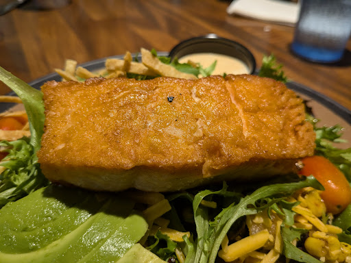 We picked out this place to eat one final meal together before dropping the kids off at summer camp not too far away. We reviewed the menu online ahead of time and I asked for the Fresh Strawberry Garden Salad. Unfortunately, that online menu was out of date and they no longer offered it. No big deal. I picked the Southwest Salad as a backup, with some modifications. Instead of the chicken, I asked for salmon. No problem at all. The salad was wonderful, fresh greens, a perfectly ripe avocado, salmon that was cooked really well, and a tasty chipotle ranch dressing served on the side. It was a very good salad and was surprisingly fresh and tasty for a bar-type restaurant as this. Basically, if you're coming to Angry Dad Draught House and looking for a healthier option, you'll do just fine.