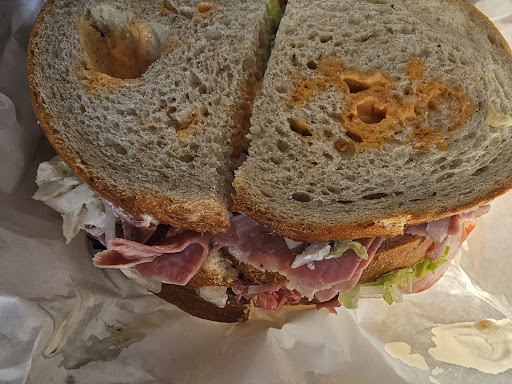 We got there, and my buddy had told me it was likely already bagged and ready. I smelled the baked goods from outside. Friend told me it was all done fresh in house, every day, from scratch. I was shrugging and skeptical until I walked in. Stunned. Clean little spot, food smelled amazing, ingredients neatly lining the shelves, baked goods on display, check check check. The lady asking us for our order was quick efficient to the point. Our food was done. The guy behind the kitchen is an absolute unit. My friend told me it's a one guy show. Gives back to the community all that. Huge bonus in my book. They even had a good challenge. (I'll be ready next time) got our food and head home, when I opened that box let me tell you I was shocked. Not what I expected at all! My friend knew what I didn't, I was about to have the experience. Sourdough rye triple stacked with corned beef and pastrami, a great dressing, with LOTS of veg. This sandwich was what dreams were made out of. I got through half and fries before I tapped out. That was a new snack for later.