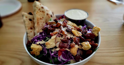 We met some friends there for lunch and ordered the house salad and the Shroom pizza. After getting our drinks and sitting down, the salad came out pretty quickly. However, it had hardly any dressing on it at all, very bland. But... we forged through it and chalked it up to a mistake because that happens!