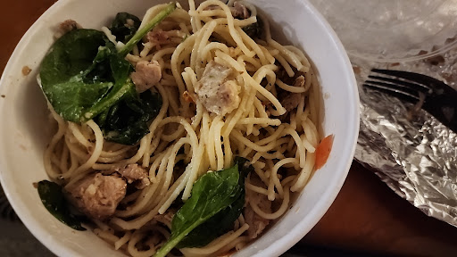 Be prepared. I'm bringing tonight's order in so you can taste & see for yourself! A bowl of pretty dry spaghetti with barely any diced tomatoes & dry chicken. This was completely covered in spinach leaves, and a sprinkling of grated parmesean that had "spider web" melted on the layer of spinach leaves. Where is the PARMESAN ALFREDO & PANCETTA?? I swear they covered up the pasta so you couldn't see how poorly prepared the bowl was.