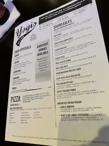 I was hesitant to ever come here because I’m not the biggest fan of sports bars and I’ve always felt iffy about the other locations.. but this place is a real winner to me. Was looking for a place to take the dogs and sit on a patio to get a late night bite and yogis was the first place to come to mind. This location specifically has the warmest, most inviting atmosphere in comparison to their other locations. For a slow Monday night, the service was top notch. I was fully expecting to order and everything from the bar and carry it out to the patio but the lovely bartender made it a point to come out and take care of everything for us. Everyone was also super friendly with the dogs which is a super big plus for me. I was also skeptical of the food going into it but I was pleasantly surprised and thoroughly enjoyed everything that came out, especially for a place whose kitchen stays open until midnight on week nights. Overall a great experience and plan on going...