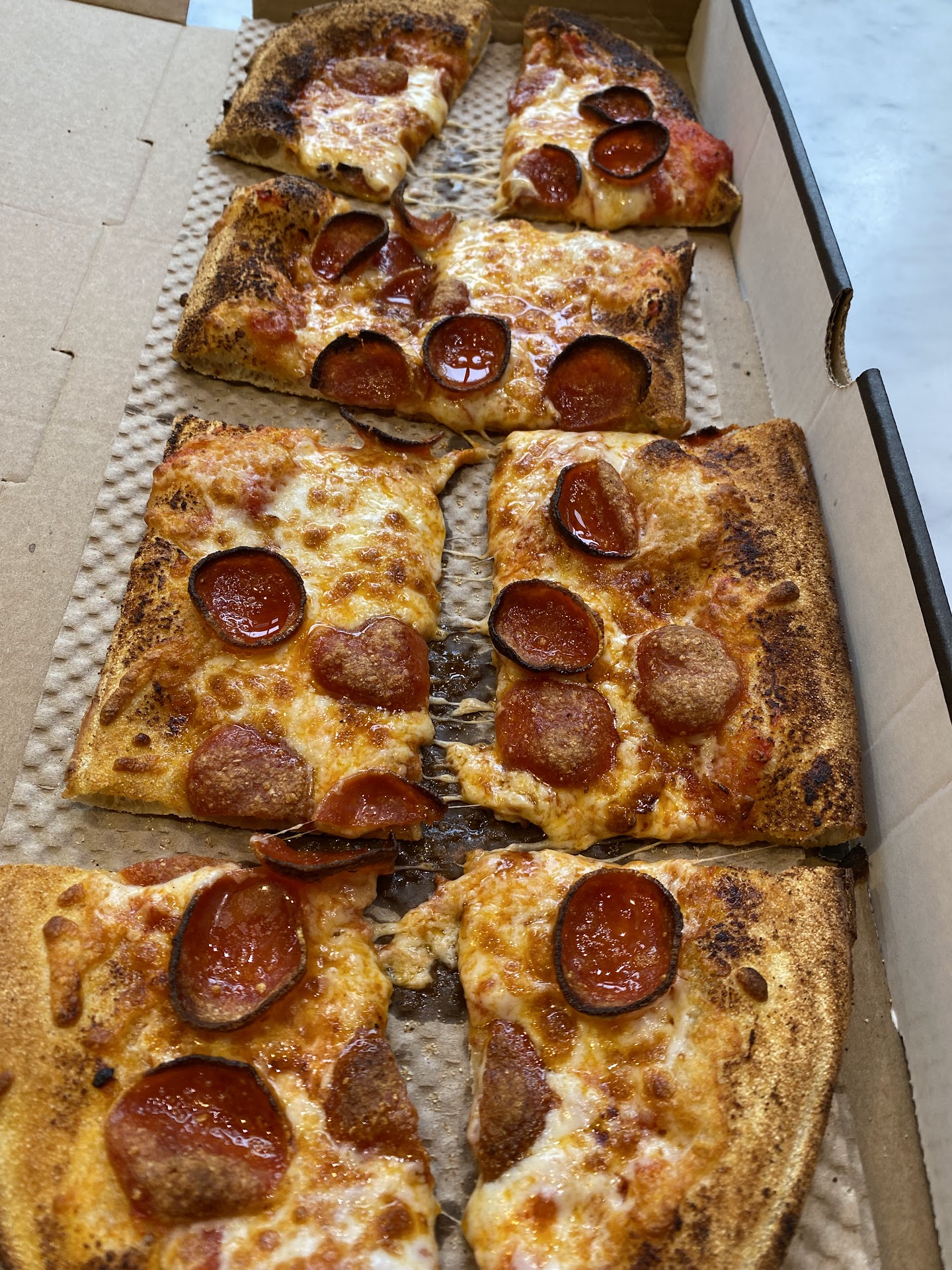 I placed my order at the kiosk around 6:30 pm. It was still daylight outside. Our order was #70. We waited and waited and waited. People that had come in after me left before me and at one point, I had went to the register side of the counter and saw my exact order being cut, packed into boxes, and placed inside the warmer. I sat waiting for my name to be called, and yet, I continued to wait. The sun was gone, and we had been there for about 30 minutes, so I asked the man at the counter if my order was ready (knowing it was in the warmer). I gave him my name and my order number and he asks, "did you place the order at the kiosk?" And I said, "yes." He said, "then it's not ready" and dismissed me. So guess what I did? I waited some more. Because the last thing I want to do is argue over pizza and ruin someone's day. I've had jobs in customer service and I know what it's like so I really decided to push my patience. Another 10 minutes goes by and it's dark outside now. I'm searching through my phone for my order number so I can ask for a refund (it was about $50), because id rather do that and order Domino's and get more pizza anyway. Finally, the man checks the order screen a few times between cutting pizzas and opens the warmer and calls out my name, pulling out all the boxes I saw him put in there a long time ago. I approach the counter, visibly upset but I take the pizzas, check them and leave. I turn back, at the very least hoping for an apology, but the man is absolutely silent. I am LIVID.