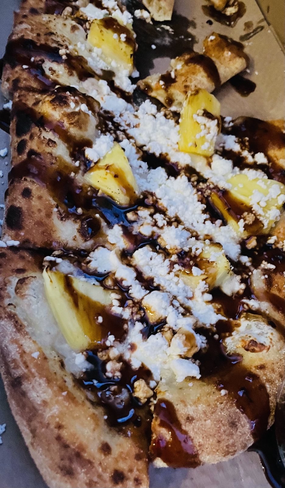 It was SO good. I hadn't eaten anything that day and demolished it. The employee indeed really hooked me up with extra goat cheese, did the fiz drizzle and even gave me a side cup of extra. I didn't really taste any truffle, but obviously this pizza had a lot of flavors going on haha so was likely overshadowed.