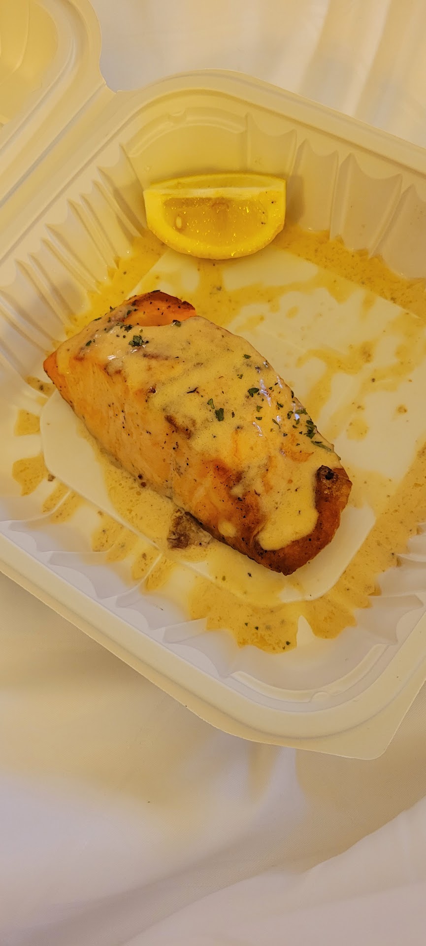 When we finally got our food, the presentation was... interesting.. My steak was entirely flavorless and was 90% fat The asparagus side was barely cooked and the mac n cheese side is literally burnt Mac n cheese wrapping a mozzarella stick. My Grandmother's ribs aren't even ribs, they're like 2 fist sized chunks of pot roast but they at least have some sort of flavor but her sides are both the same as mine.