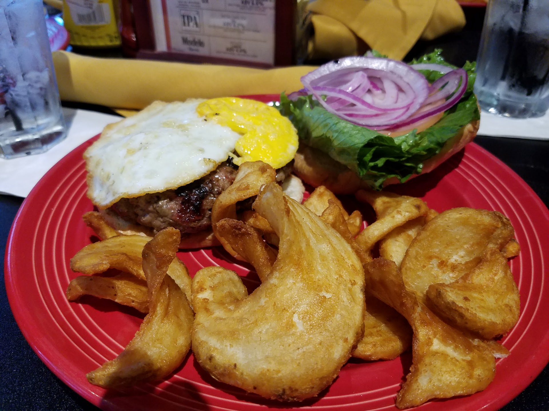 We ask waitress to get us some more water and she takes the water and doesn't come back for quite awhile and we had to remind her, only then did we actually get our water back.