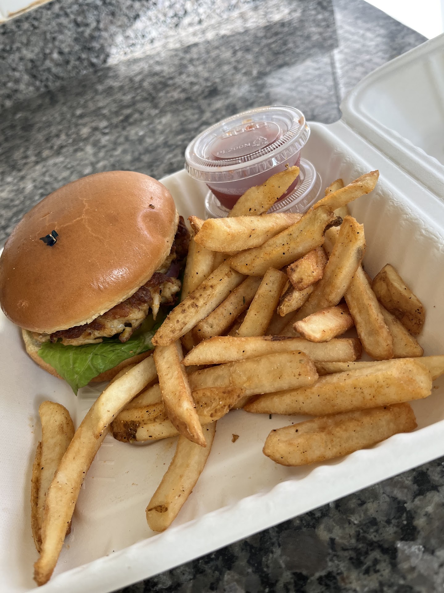 I lived in this area for a little minute they've been putting nice little restaurants here since I've been living here they put this restaurant here I've been looking at it every time I go by there I looked in there and I say I want to try this place one day the other day I took a chance and I went in there and I ordered the crab cake sandwich meal and I must say it was worth it it was very good I will be going back to Chicken and waffles ribs steak and cheese and quesadilla chicken sandwich LOL these are all the other things that I would like to try and I'm quite sure they're going to be just as good as the first one.. and I hope you guys don't come and give us this good food and then we look up and you guys are gone they give us nice restaurants and then we look up and they...