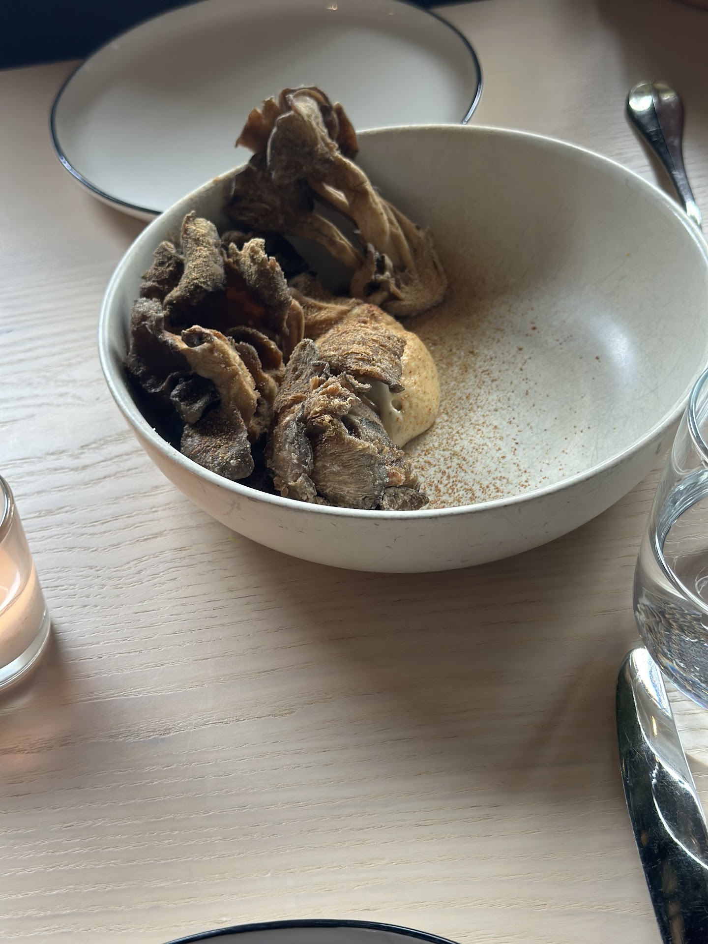 We kicked things off with a spread of starters that instantly set the tone for the meal. First up, the buttermilk biscuits—flaky, golden perfection. But the real star? The hotel butter they’re served with. Silky, rich, and impossibly smooth, it was so good I found myself rationing every bite just to make it last longer. Then came the chickpea panisse, which brought a crisp exterior and creamy center, making for an unexpectedly addictive bite. The crispy oyster mushrooms were just as impressive—meaty, crunchy, and packed with bold umami flavor that made them a standout.