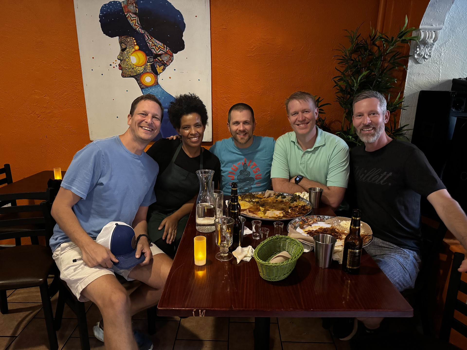 Ā Ā Ā Read moreThe food and the owners are fantastic (thatās the owner in the picture with us š)! I have to say that I donāt know anything about Ethiopian food. One of my friends picked this spot and a group of us came. Our server was one of the owners and ran the place with her two sisters and brother. She made us feel at home, patiently answering questions for us since we were novices, and offering us samples of the few different house made Ethiopian drinks they served (one was like a mead and one was more of a spiced dark rum). We enjoyed everything we tried. I ordered the Sambusa appetizer and it was very fresh, with crust that was flaky and delicious. For our main course, we ordered a large plate that came with six different vegetables and beef, along with plenty of bread (I donāt remember the name of this dish or the name of the bread, but we loved it). It was $63 and was enough to feed three people. At the end, I ordered the baklava and it was the best Iāve had, warm, fresh, and flaky. Overall, we had such a good experience and we will definitely eat here again next again next time we...